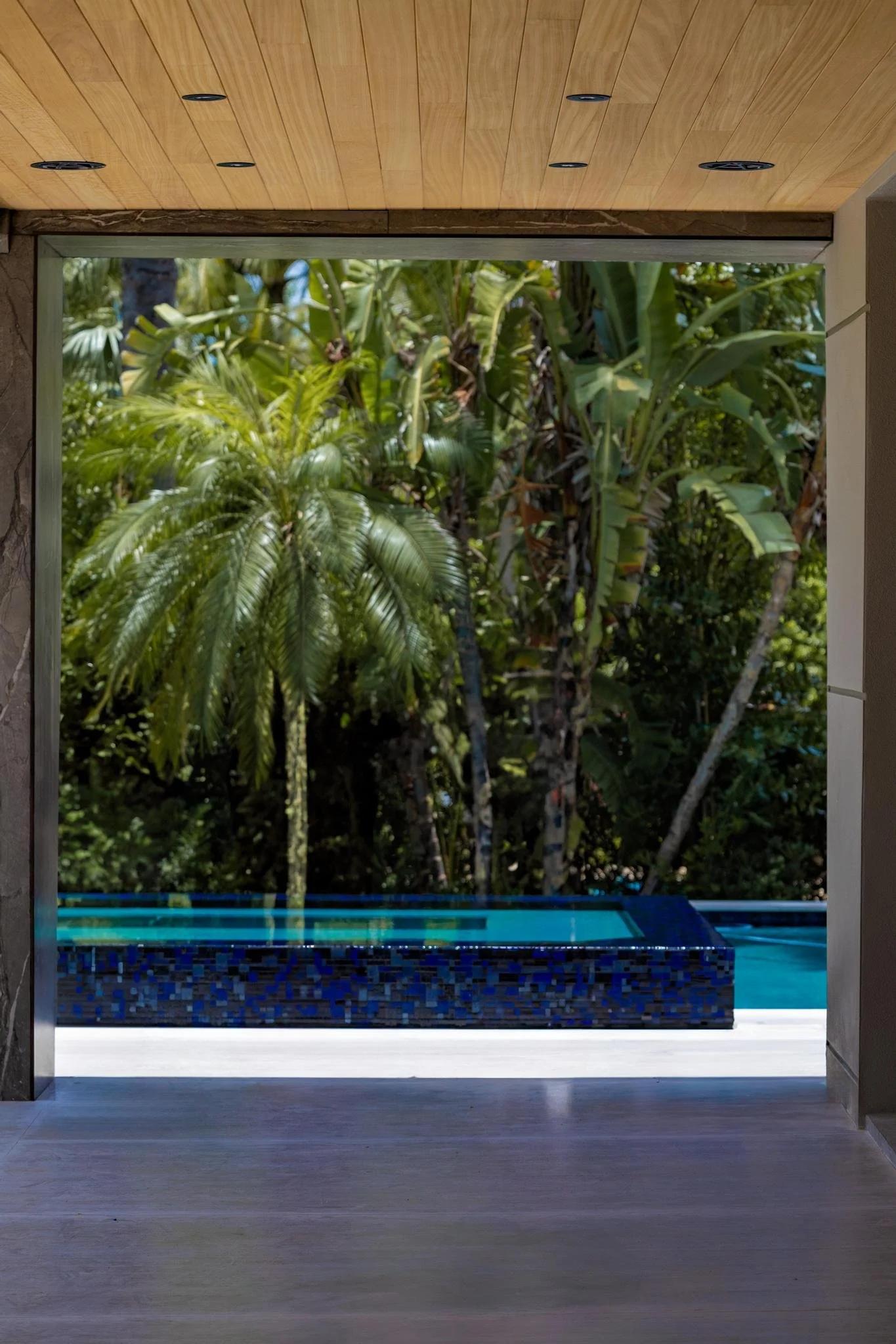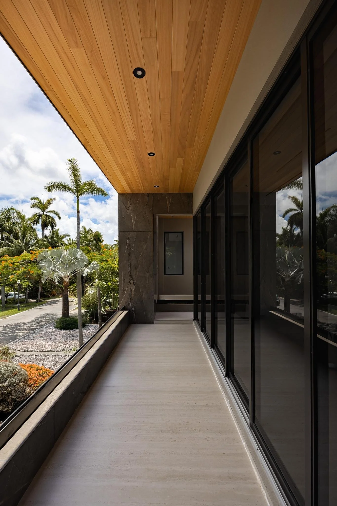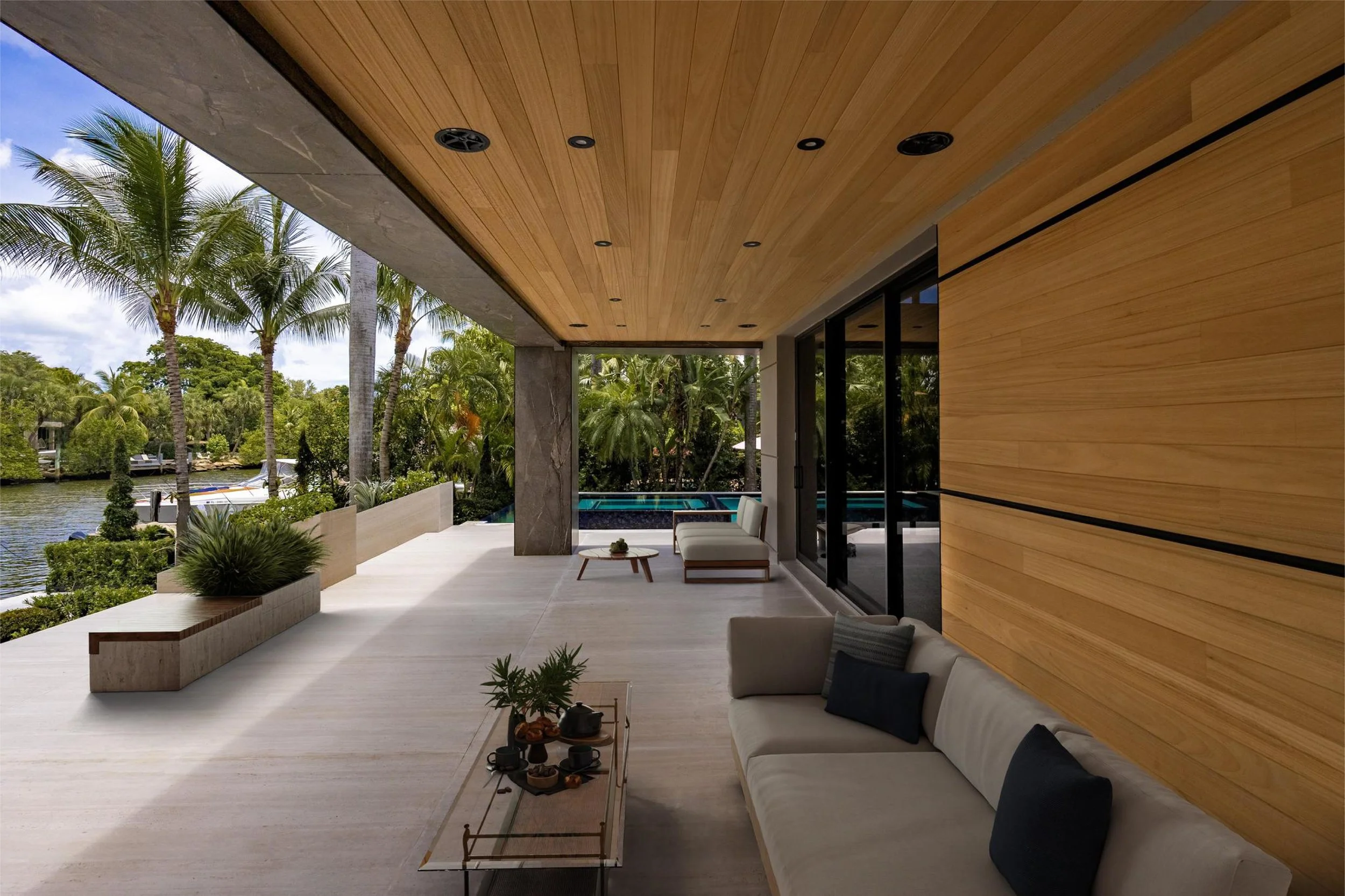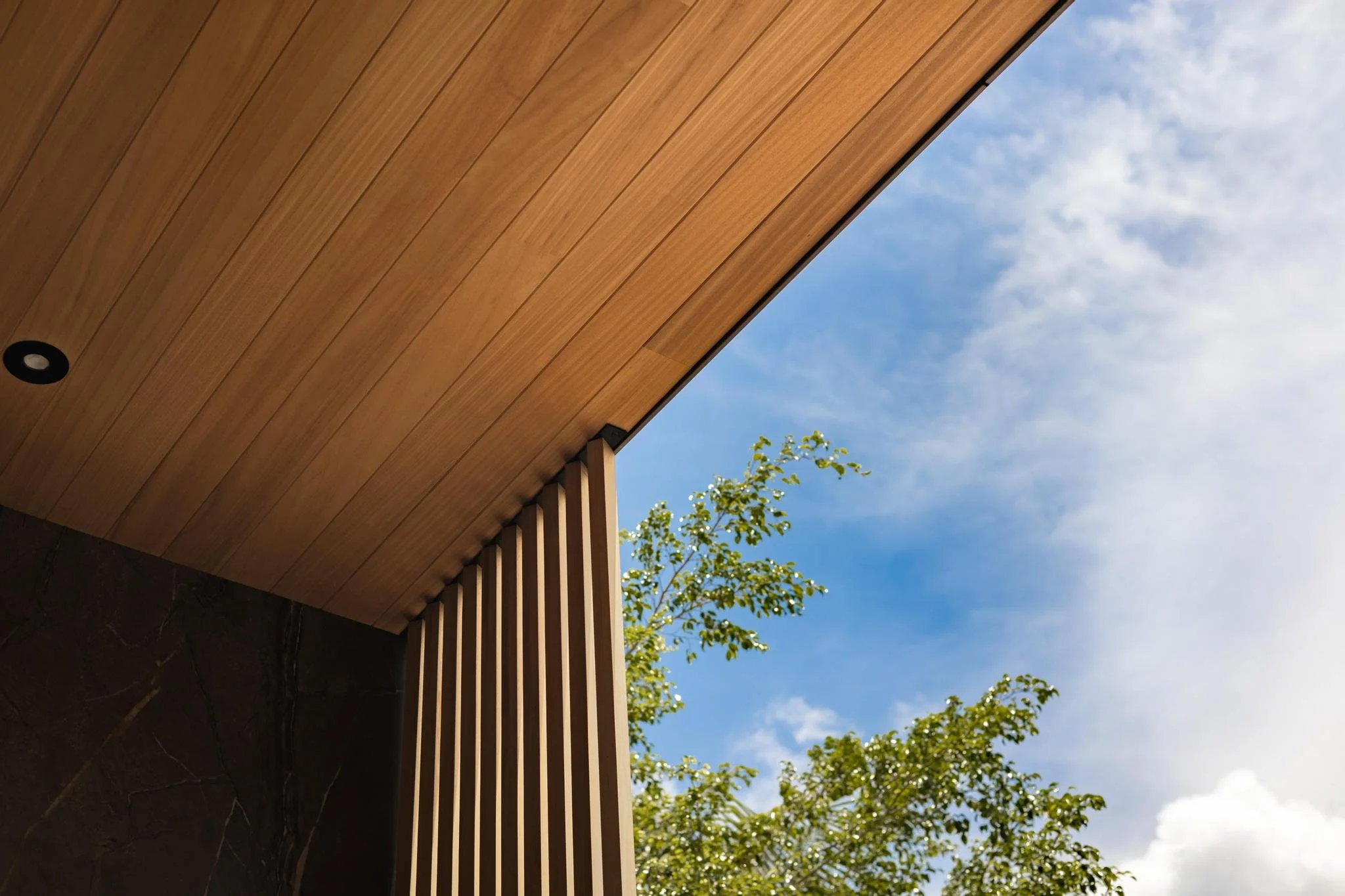 This project highlights the artistry of architectural product photography by focusing on the natural warmth and elegance of the wood installation that elevates the design of this modern waterfront property. The composition was carefully crafted to showcase the ceiling panels and wall cladding, drawing attention to the precision of craftsmanship and the richness of the material. Natural light plays a central role, enhancing the depth and texture of the wood grain while creating a striking contrast with the surrounding stone and tropical landscape.